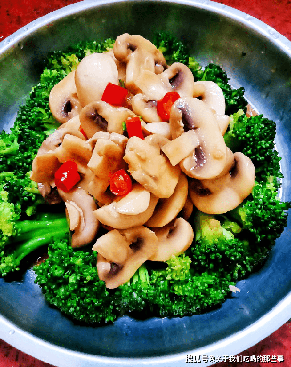 西蓝花掰成小块,用淡盐水浸泡20分钟,捞出洗干净。白蘑菇洗干净,切成片,蒜瓣去皮切末,小米椒切圈。烧一锅开水,放入西蓝花煮2分钟,捞出过凉水,沥干水分。