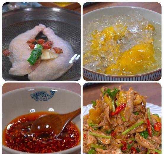 3、把鸡腿肉撕开成条状,放点葱丝,小米辣,花生碎,熟芝麻,淋上调好的料汁,带上手套搅拌均匀,就可以开吃了。