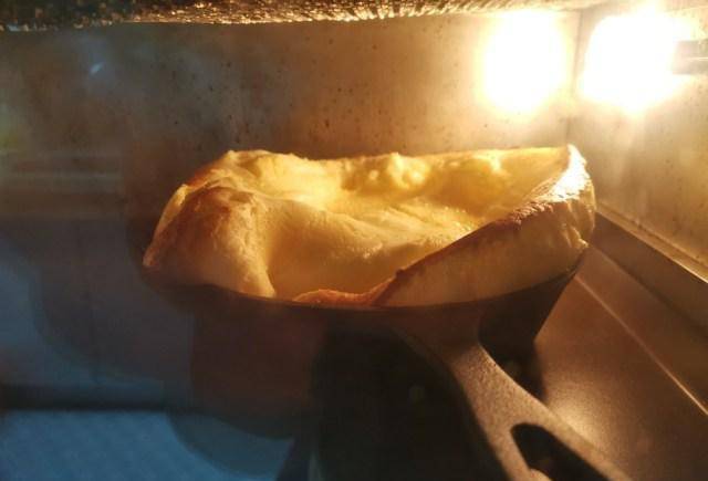 所以我的面团不够,铸铁锅太大了,仅仅一颗鸡蛋的力量,还不足以让它向上膨胀。