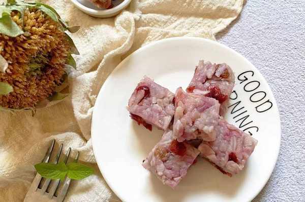 在今天的芋头蒸糕里,我放了些酸酸甜甜的蔓越莓干和葡萄干,跟平常的蒸芋头相比,在口感上要丰富很多;吃起来绵软香甜中又带了一点点蔓越莓的酸。