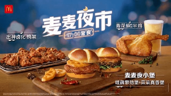 此外,自2000年起,肯德基陆续推出皮蛋瘦肉粥、豆浆油条等本土化餐品,麦当劳随后跟进。2021年,肯德基更是推出了“早安·城市味道”计划,针对不同城市的饮食特色,推出对应的热干面、胡辣汤、小笼包等的地方早餐美食。2022年,麦当劳则上线了夜宵项目“麦麦夜市”,推出“啤酒+鸡架”等夜间专属产品。