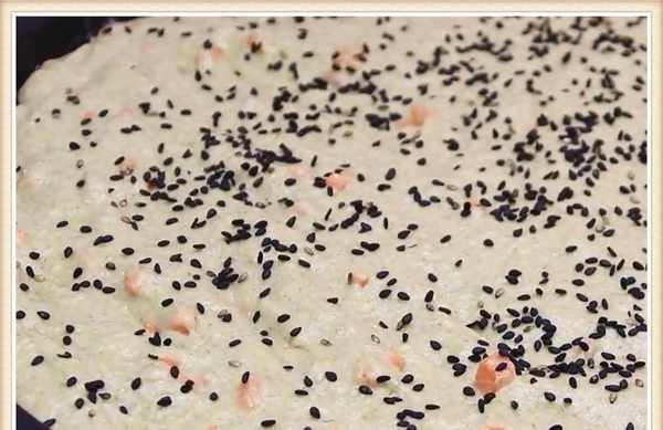 面条准备好后,加入切碎的胡萝卜,混合并离开气体。大约一两分钟后,在不开火的情况下,在电煎锅中加入油。倒入绿豆沙,抹在蛋糕上。抹匀后,加入黑芝麻,盖上。第二次醒来20分钟,直到高个子盖子的音量增加。