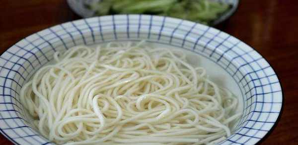 3。锅中倒入水烧开,加入少许油和盐,然后将面条摇匀煮至熟,捞出沥干水,放入碗中。