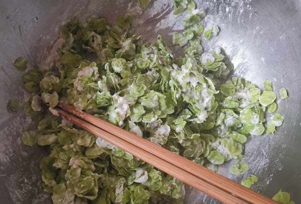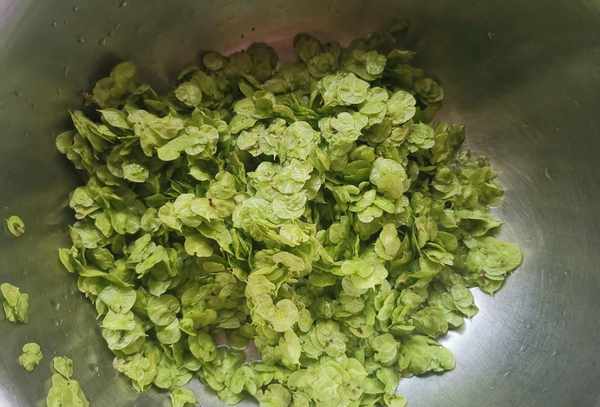 第一步:上图是almepenger,这是一种长在树上的美食。捞起后简单挑选,然后放入锅中,加入适量清水,倒入适量食用盐调成淡卤水,浸泡半小时左右,捞出洗净干净的水,让您放心食用。榆钱富含碳水化合物、蛋白质、膳食纤维、烟酸等有机酸和钾、钙、磷、铁、锌等微量元素。其中含铁量极高,是菠菜的10倍,西红柿的50倍。榆钱不仅营养丰富,而且具有健脾安神、清心降火、止咳化痰的功效。榆钱含有丰富的钙和磷。具有清热安神之功效。可治疗神经衰弱、失眠。睡不好的人更容易吃得更多。春天不要错过。