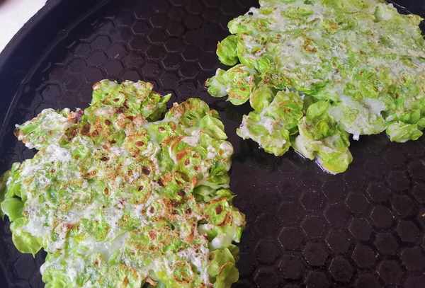第五步:翻面继续煮2分钟。两面都会变成金黄色。直接从锅里端上来。这样的小糕点,作为三餐的基本食品,非常好吃。老人小孩都喜欢。春天尝鲜的季节,一定要努力!