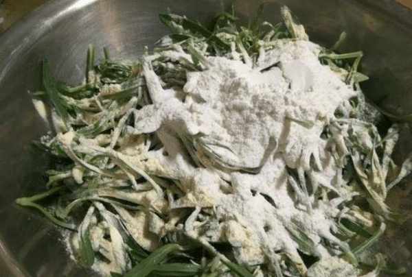3:将面食搅拌均匀,然后准备一个蒸锅,蒸锅里倒入适量的水,底部垫一层蒸布,铺一层猪油,将面食放入蒸锅,盖上锅盖。.
