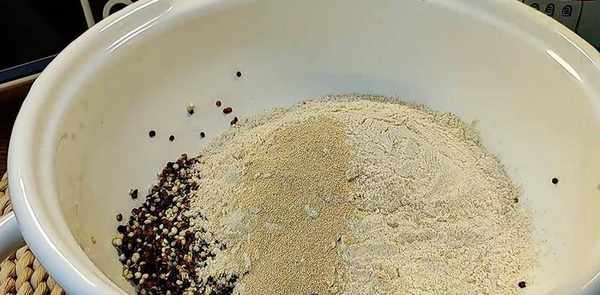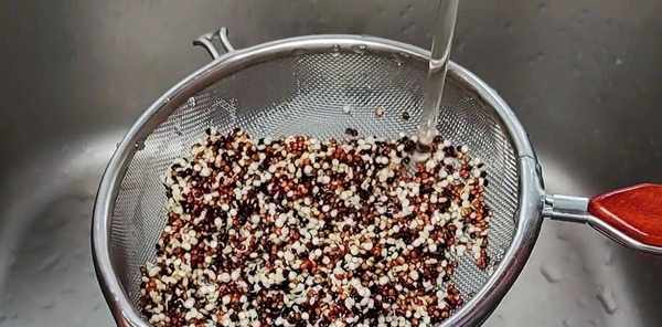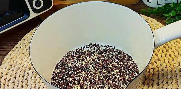 准备三色藜麦60克,加水洗净浸泡20分钟。