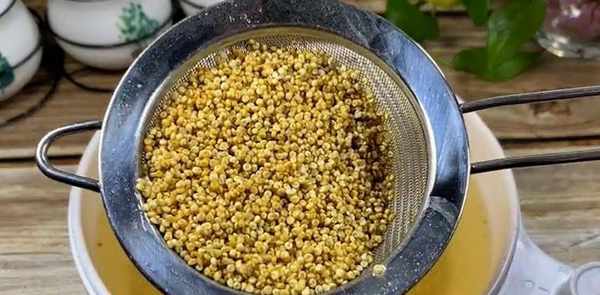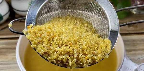 时间到了,藜麦芽全开了,用漏勺滤出水分沥干。