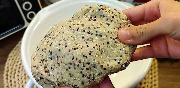 蒸好的馒头不要急于拆开。开盖前炖五分钟。吃之前拿出来放在盘子里。蒸出来的全麦包子透气松软不塌陷,满满的麦香和藜麦的脆口。