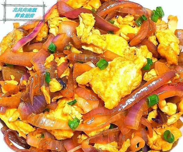 2另起一锅油烧热,加入洋葱炒软,加入鸡蛋,加盐、鸡精、生抽、蚝油调味,大火炒一分钟,撒上葱花,即成美味的家常菜食物。洋葱有杀菌消毒的作用。流行性感冒常发生在春季。您可以吃几种洋葱制成的菜肴,它们有很多好处。