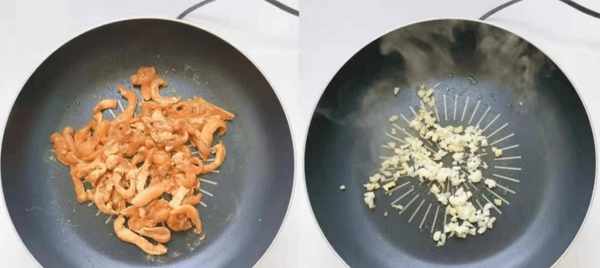 第六步:锅底留少许油烧热,加入切碎的蒜和姜,让蒜香味迅速散发出来,加入青椒碎和洋葱碎,煮约2分钟。