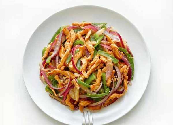 青椒洋葱炒鸡胸肉是春季不可错过的一道开胃菜。有菜有肉,有荤有素。