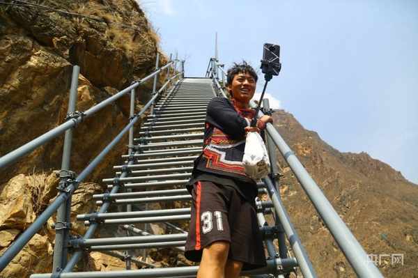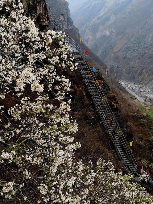 悬崖村钢梯前的春意(央广网发 阿克鸠射摄)