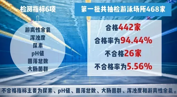 2019年,廣州市微生物研究所的專家工程師檢測了6個常規項目,其中游離餘氯和細菌總數兩項不達標;今年7月27日,深圳市衛生監督局公佈了2021年全市游泳場所第一批水質抽檢結果,在468家泳池中,發現26家不合格。這兩個結果都指出一個事實:游泳池很髒。