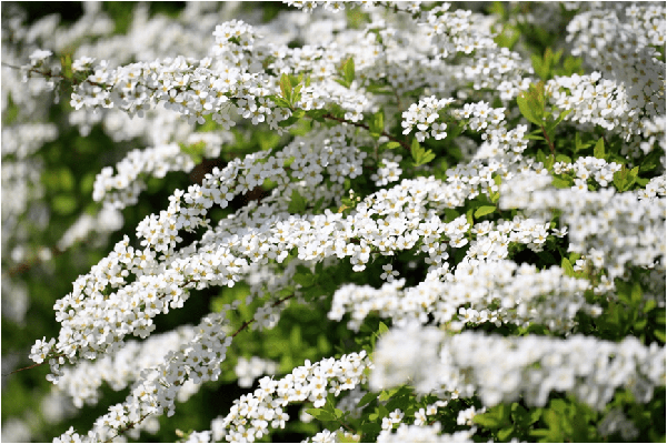 许多公园或者街道景观都种植了这样一种植株,它冬天如同枯枝,但春天一到,就会密密麻麻地开出白色小花,宛如纷飞白雪从冬日穿越到了春光中,再现漫天雪景。这种植物,我们叫它“喷雪花”。