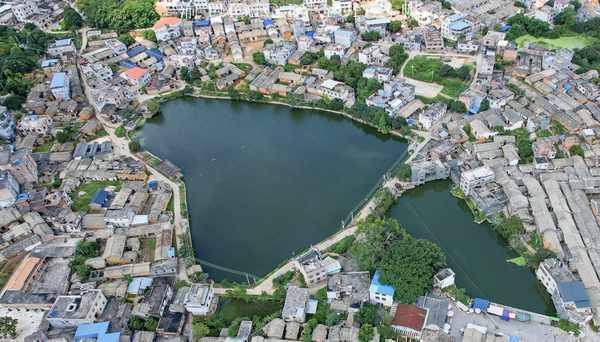 当地朋友没有骗我们,当我们按导航来到这个位于灵山佛子镇的古村时,远远就看到了一排一排的古建筑,于是第一时间升起无人机来航拍了一翻,规模很大,目测足有5平方公里左右,就如同一个小镇一般。