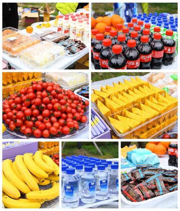 本次的徒步路线上,公司为各位队员准备了2个移动补给站,饮料、食品、水果,应有尽有,让小伙伴们在完成不同路段的徒步之后可以及时补充能量。