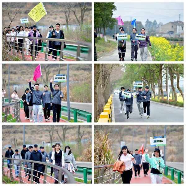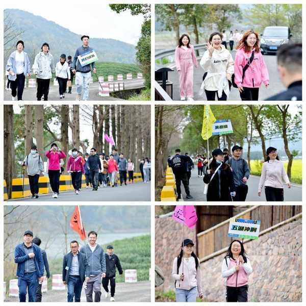 徒步的队伍身着统一定制的服装,迈着整齐而矫健的步伐,激情昂扬地行走在宁波江北的春光中。每个小队一边欣赏美丽的风景,一边昂首阔步前进,和周边的风景融为一体。初春适宜的气温,让本次徒步变成了一次充满惊喜而惬意的旅行。
