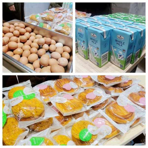 3月18日一早,“工作组”的同事们早早来到公司,为陆续来到公司大堂集合的队员们发放一份份“能量早餐”。早餐区整齐放置着牛奶、香蕉、小蛋糕、鸡蛋等食物,让队员们在出发前填饱肚子、补充能量。