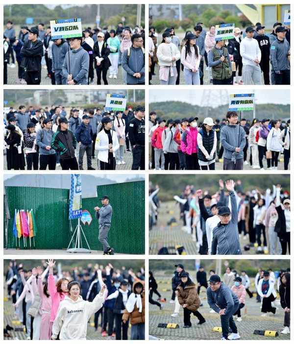 经过15分钟的车程,四辆大巴抵达了起点。队长们带着队员们按照出发顺序进行整齐列队。在“教练员”张经理的指导下,每个参与徒步的队员进行了整齐划一的热身、拉伸。