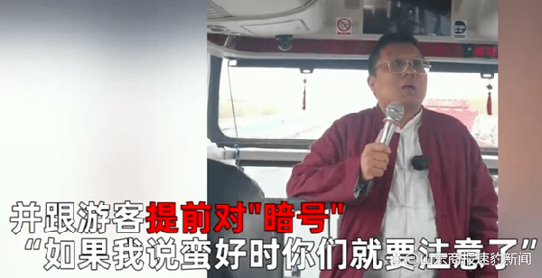 视频显示,事情发生在3月19日。“记住,不用给我‘捧场’,什么也不用买;你们喜欢、要买,我不拦你们。”在一辆类似旅游大巴的车上,小黑诸鸣手拿话筒对游客说道,“看到好看的,你如果吃不准,可以问我,当面我不会说的。”随后,他跟游客面授机宜、对起暗号。“你在人家店门口问我是真的假的,我都会说蛮好蛮好。我说蛮好的时候你们注意了,自己上点心,我不能说不要买;我要跟你说好的,你赶紧买。”