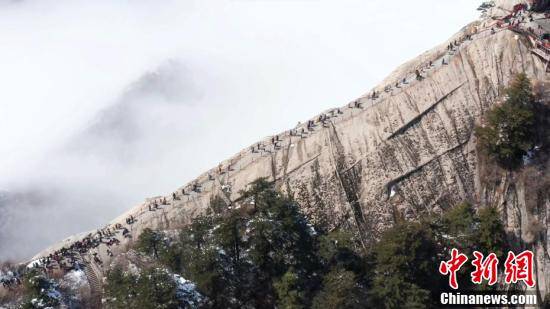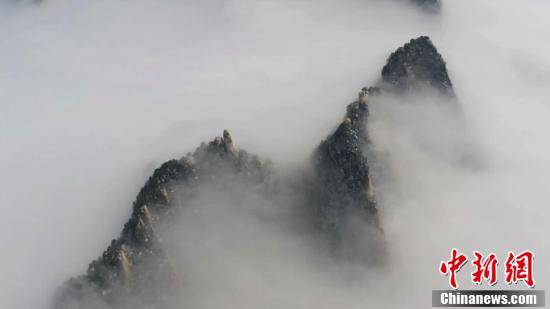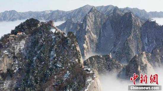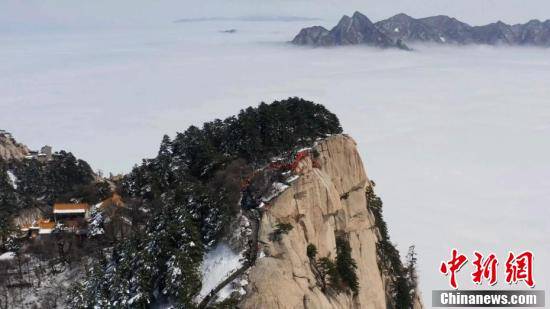 近日,春雪过后的华山出现了绝美的雾凇云海景观,放眼望去,雾凇沆砀,云海翻腾。层峦叠嶂的山峰、飘逸蒸腾的云海、银装素裹的雾凇,如梦似幻,仿若人间仙境。张维宇 摄