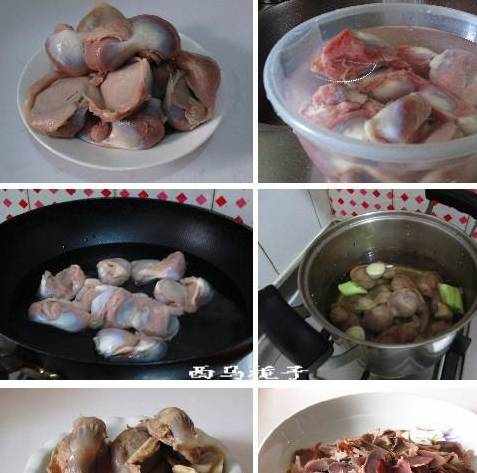 小贴士;鸭胗用清水泡出血水。焯水的时候加入料酒,可以去腥。