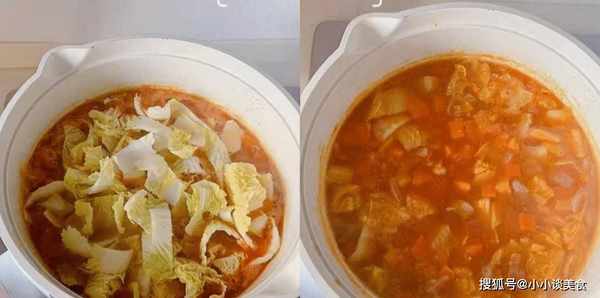 第七步:放入白菜稍煮,待白菜变软,加入香油,收汁出锅。这种牛肉是用卷心菜、胡萝卜和土豆做成的。汤很浓郁,配饭很好吃。