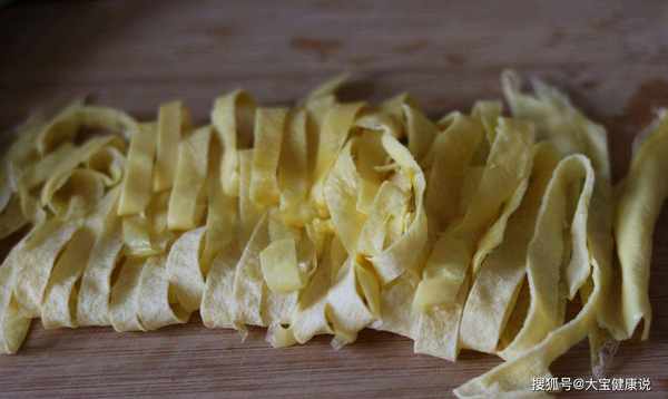 准备第四步:将平底锅洗净,在锅底刷上一层食用油,然后将调好的蛋液放入锅中,待蛋液完全收平,将蛋壳两面煎好,然后将蛋壳切成细丝备用。