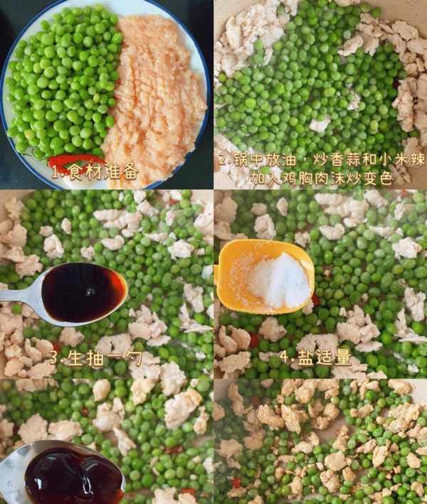 烹饪技巧:你需要买青豆、鸡胸肉和一些配菜。将鸡胸肉剁碎,腌制一会。青豆炒鸡胸肉的步骤很容易掌握。