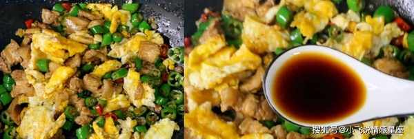 第七步:加入一勺生抽和老抽,加入半勺蚝油提鲜,加少许盐和鸡精,翻炒几下,关火出锅。这道辣椒肉炒蛋就做好了。