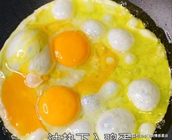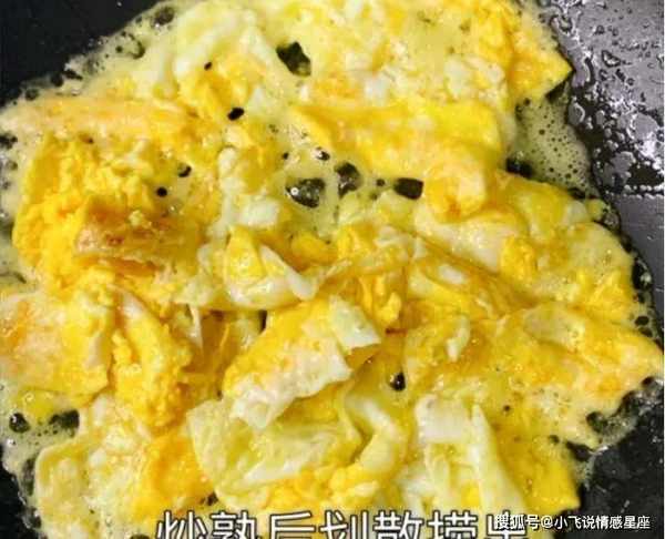 第四步:锅底预热,加入油,倒入少许蛋液,中火煎至蛋液凝固,炒成小块,盛入容器备用。