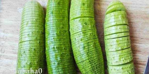 1、黄瓜整个洗净,一刀一刀的切下去不要切断,可以在黄瓜两边放二根筷子,每次切的时候不会一下子切断。