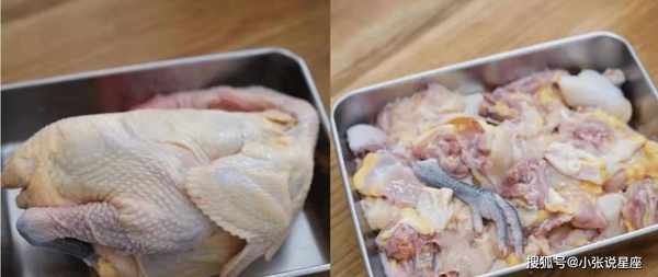第六步:炖五花肉时可以将老鸡剁成块,用清水浸泡一个小时,洗去表面的血水。