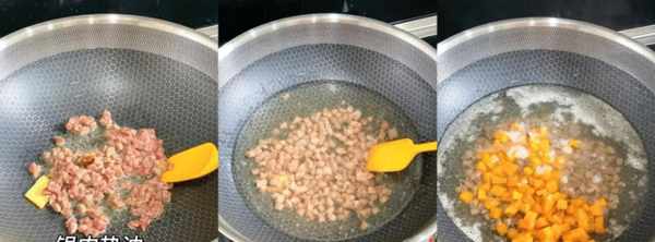 第四:将牛肉末腌制15分钟,锅底倒入冷油烧热,转中火将肉末煎至变色,锅内放少许热水烧开。