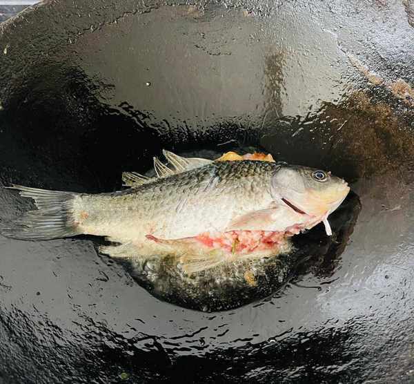 准备食材:买新鲜的野鲤鱼(鲤鱼要中等大小,表面不能烂,这样煮出来的鲤鱼汤会更鲜美),新鲜洋葱3个,大蒜一小块,一大块。生姜、猪肉100克、黑蘑菇5克、水几大碗、料酒少许、黄酒少许、玉米少许、色拉油少许、鸡蛋豆腐一块、盐少许、一勺黑胡椒、3瓣大蒜和其他香料。
