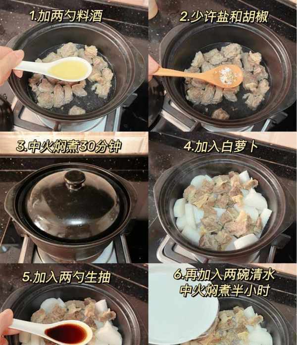 第六步:待白萝卜煮至透明时,尝汤汁,加入盐、鸡精或其他调料煮2分钟。