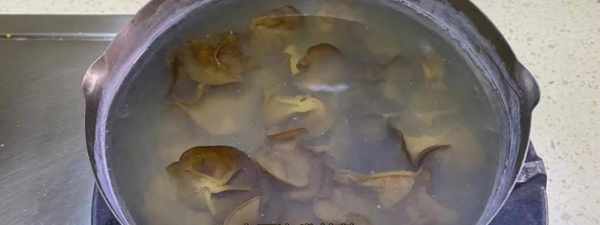 第二步:锅中烧开几碗水,加入适量的盐和小苏打,将黑木耳漂白一会儿,去除黑木耳表面的有害成分。如果你觉得黑蘑菇太大了,可以把它切成几小块。预订。
