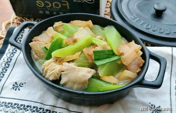 Tips:培根是很多人都喜欢吃的美食。培根的味道很香,脂肪含量不高,可以和很多食材一起吃。不过腊肉本身是一种腌制的食材,必须用淘米水中和才能去掉腊肉。如果想要辣味,请将培根切成薄片。在这道菜中,先将培根煎至半透明,加入沙拉一起炖,加入少许水和牛肝菌块,用小火慢炖,最后加入蒜苗和香料出锅。.