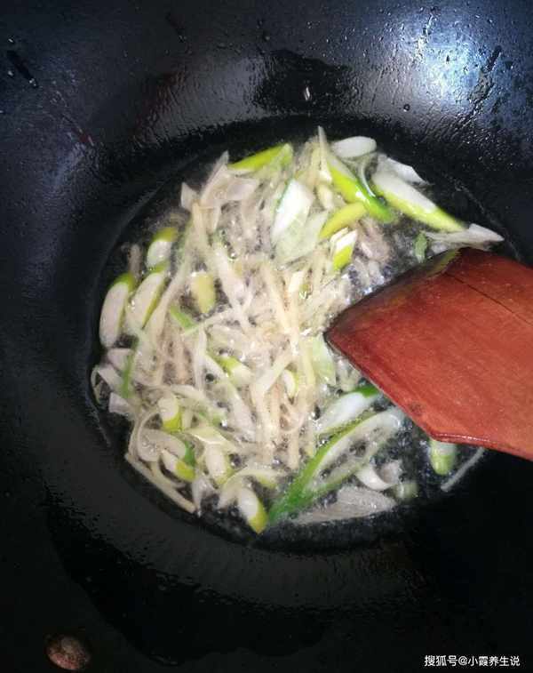 第五步:锅中加入少许食用油,然后油烧热,加入葱、姜、蒜快速炒香。