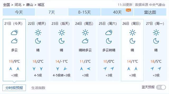 未来7天天气:从天气预报来看,未来7天,最高温19℃,最低温-1℃。早晚温差仍然较大,小伙伴们适量增减衣物哦~
