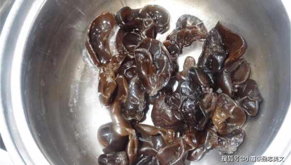 第二:将30克干黑蘑菇用热水泡一会儿,把蘑菇的根部切掉,锅里烧开一碗水,加入小苏打和少许盐,把蘑菇煮2分钟,浸泡在冷水中泡一会儿,洗掉海绵上的一些脏东西,切成小块。