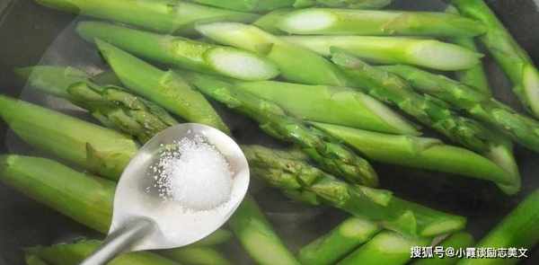 第四:锅里烧开一些热水,记得撒盐和油,把芦笋部分放进锅里煮一会,芦笋一定不能煮太久,把芦笋用冷水泡一下,把芦笋沥干油炸前。
