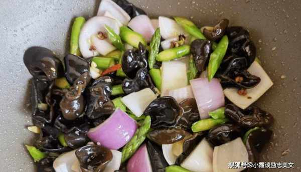 【洋葱芦笋炒黑蘑菇的做法】