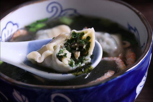 2、然后再用一个鸡蛋,适量盐,鸡精,生抽,蚝油调味,拌匀,再加入荠菜拌匀即可。把馄饨皮拿出来,按照自己的技巧包入馄饨中,下油锅煮一下就能食用啦,最后依个人喜好,做成汤底就行了。