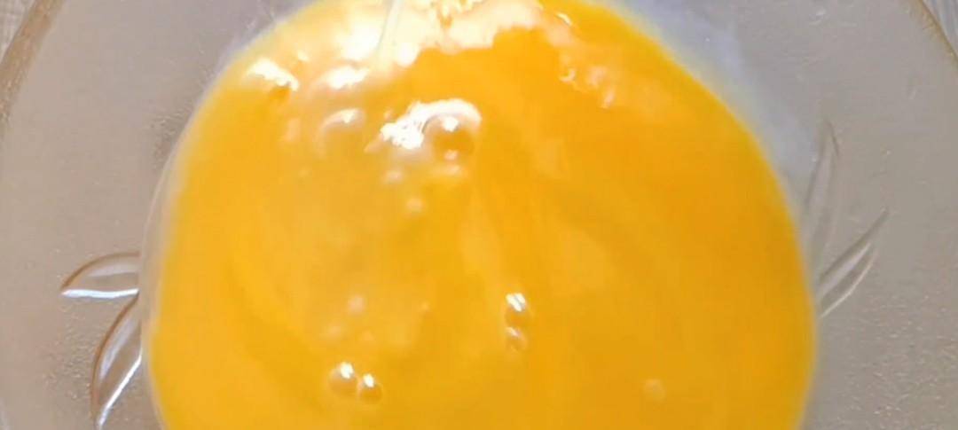 碗中打入两个鸡蛋,加入几滴白醋去除腥味。用筷子搅拌均匀备用。