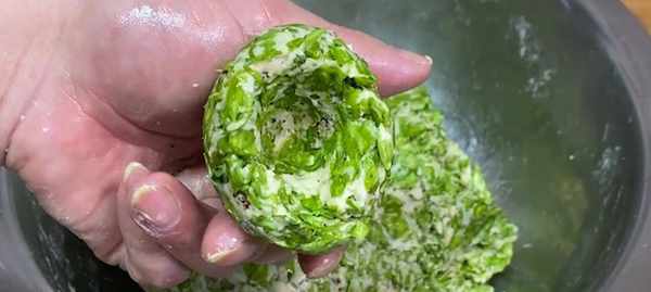 榆钱洗净,然后加水,多洗几遍,检查湿度,放入盆中,根据个人口味加入适量的盐,再加入一勺小苏打,拌匀,再加入少许小麦淀粉和玉米粉的比例是2:1,这样就可以开始生活在一个球里了。