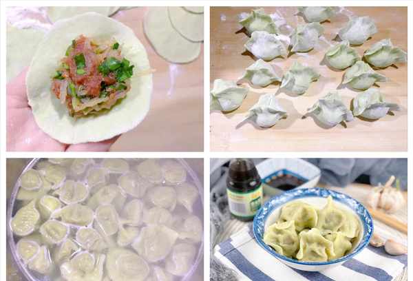 3、将事先揉好的面团揉好,切成小剂子,擀成饺子。如果想更方便,可以直接用买的饺子皮。饺子包好后,锅里加水烧开,把饺子放进去用勺子在锅底轻轻压一下,这样饺子就不容易破了。锅开后,加入一小碗冷水,盖上锅盖煮。在此过程中连续加水两次。饺子煮好后,拿出来吃。