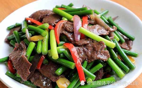 食材:牛肉、蒜苔、姜、蒜、盐、生抽、蚝油、料酒、淀粉