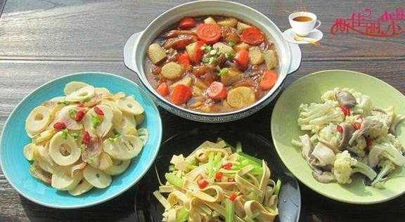 都说“众口难调”,我们家也是时常是这样,老公喜欢吃肉,而且口味重;我偏爱蔬菜,喜欢清淡点,而孩子最难搞定,经常是昨天喜欢吃,今天又觉得不好吃。因此一般我家的晚餐都是四道菜,有荤有素,还要尽量满足各人的口味,重要的是营养也均衡,可费脑筋了,这家庭煮妇还真不好当呀。看看今天的四道菜:山药萝卜炖牛筋、腊肉炒春笋、芹菜炒千张、花菜炒平菇,希望家人喜欢。